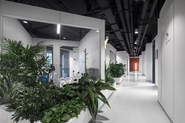 在呈現綠色生態之外,設計想要現代科技隨處可感觸可體驗,所以在整個辦公區域內,融入了人臉通行、數字化管理、辦公會議共享預定以及會議無線投屏等功能,再加上手機搖一搖的開門技術,讓人和空間時刻都能進行智能互動。